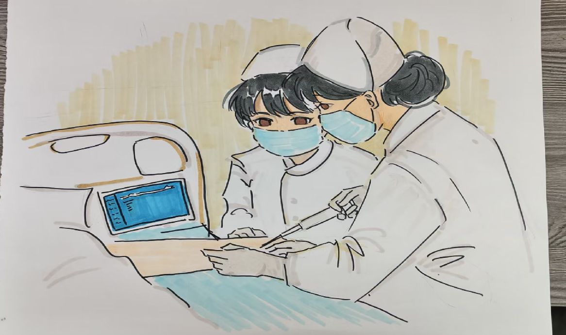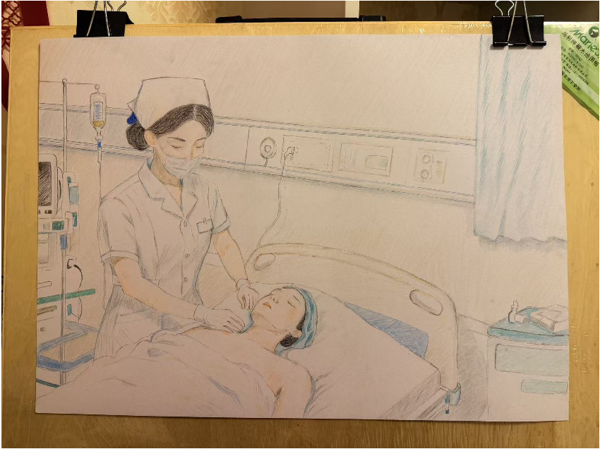 本次大赛分为团支部初评、团总支复评、作品展示三个环节。团支部初评。同学们主动挖掘护理工作的细节,绘画作品里,无菌操作的规范手势、床旁交班的温暖神态被精准还原,短视频中,“白素衣是使命”“操作规范是对生命的敬畏”等表述,结合护理岗位日常职责,分享对“细致观察病情”、“及时响应需求”的职业思考,展现出对护理工作全流程的深度认知,尽显对职业精神的深刻理解,经各团支部初评,共选出42幅作品进入团总支复评。团总支复评。10月28日在护理系会议室进行了复评,第五届护理专业带头人、基础护理教研室主任贾俊红,系团总支教师刘迎、宫国庆、杨喆,班级团支部学生代表组成评审组。各位评委秉持公平、公正、公开原则,根据作品的主题契合度、内容表现力、风格与规范性等方面进行综合考量和打分,最终评选出一等奖1人、二等奖2人、三等奖3人,评奖不仅是对同学们作品的肯定,更是对他们在护理专业学习上的一种鼓励。作品展示。获奖作品在线展示,让同学们一起欣赏大赛的精彩作品。