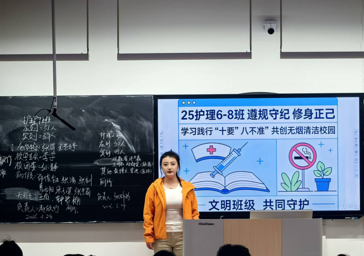 本次主题活动以“制度落地、习惯养成、责任共担、文明共建”为目标,聚焦“十要”“八不准”核心要求与无烟清洁校园创建重点,将纪律教育、品德修养、行为规范与护理专业职业素养培育相结合,通过全员参与、全程监督、全面落实,引导同学从自身做起、从细节严起,自觉摒弃不文明行为,严守校规校纪,做到知敬畏、存戒惧、守底线,真正把遵规守纪内化为思想自觉,把修身正己外化为行动自觉,实现班级纪律明显提升、校园环境持续优化、学生责任意识显著增强。