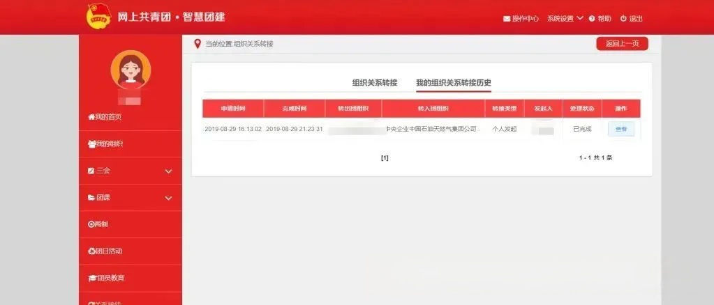 最后点击“我的组织关系转接历史”,点击查看,可随时查询转接结果。