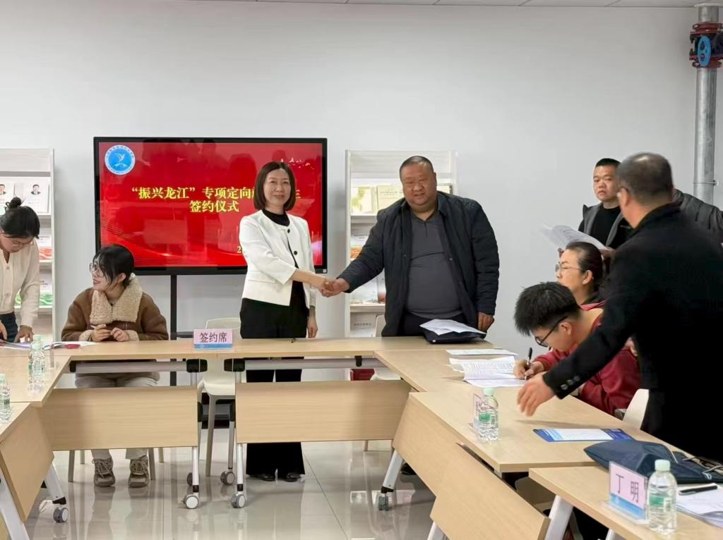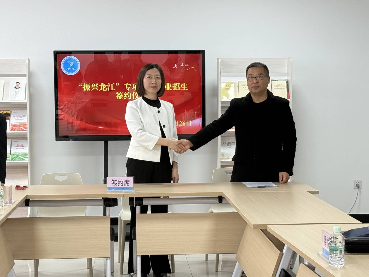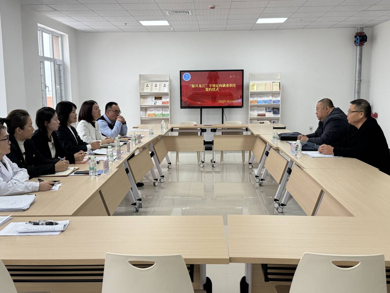 为扎实做好2025年“振兴龙江”专项定向就业招生相关工作,引导更多优秀学子扎根边疆、服务龙江,10月27日,我校成功举办“振兴龙江”专项定向就业招生签约仪式。学校、伊春市大箐山县卫健局、汤旺县卫生健康局相关领导,招生就业处、临床医学系有关负责同志以及师生家长共同参加活动。