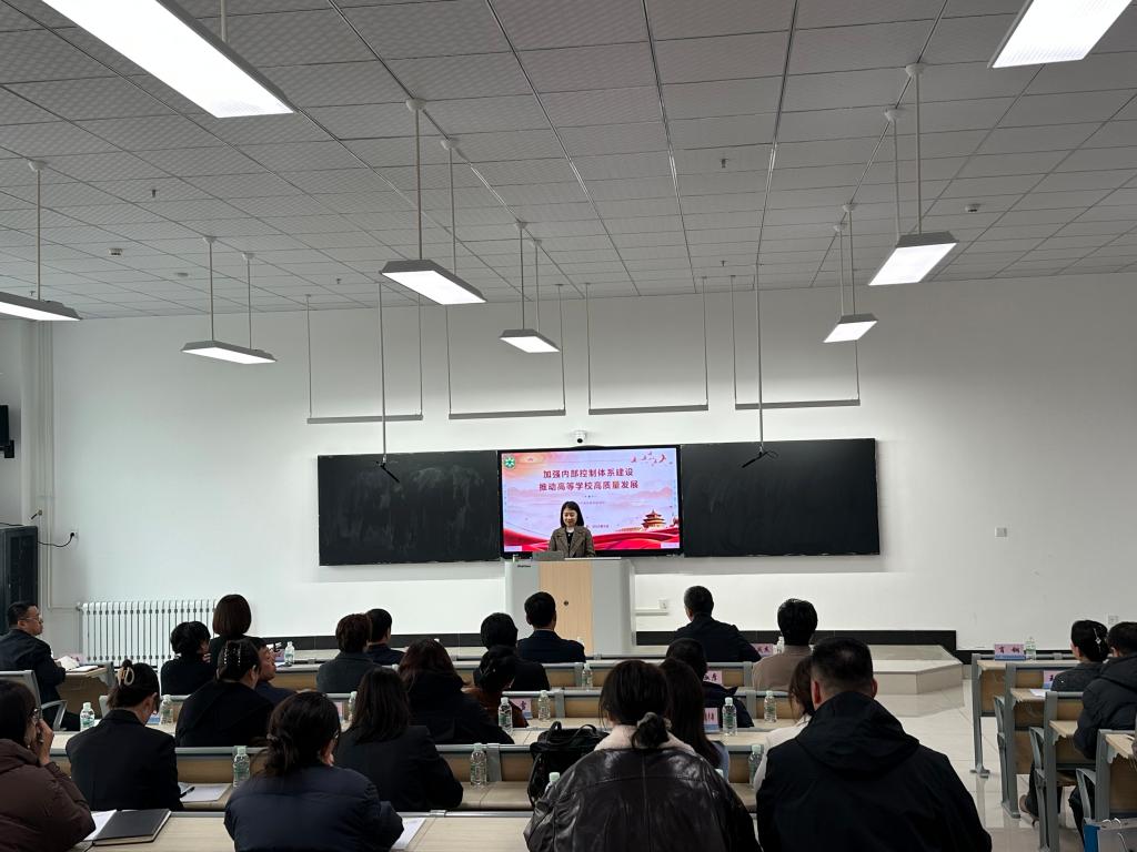 为进一步提高全校内控建设意识,提升内控建设水平,深入贯彻落实财政部 教育部《关于进一步加强高等学校内部控制建设的指导意见》,按照省教育厅工作部署,10月29日,省高校内部控制建设宣讲专家、哈尔滨金融学院审计处副处长李莉到我校开展内控建设宣讲,会议由副校长马可心主持,学校党委班子成员、科级以上干部、青年干部代表、财务资产处全体工作人员以及驻校内控建设专家组成员参加会议。