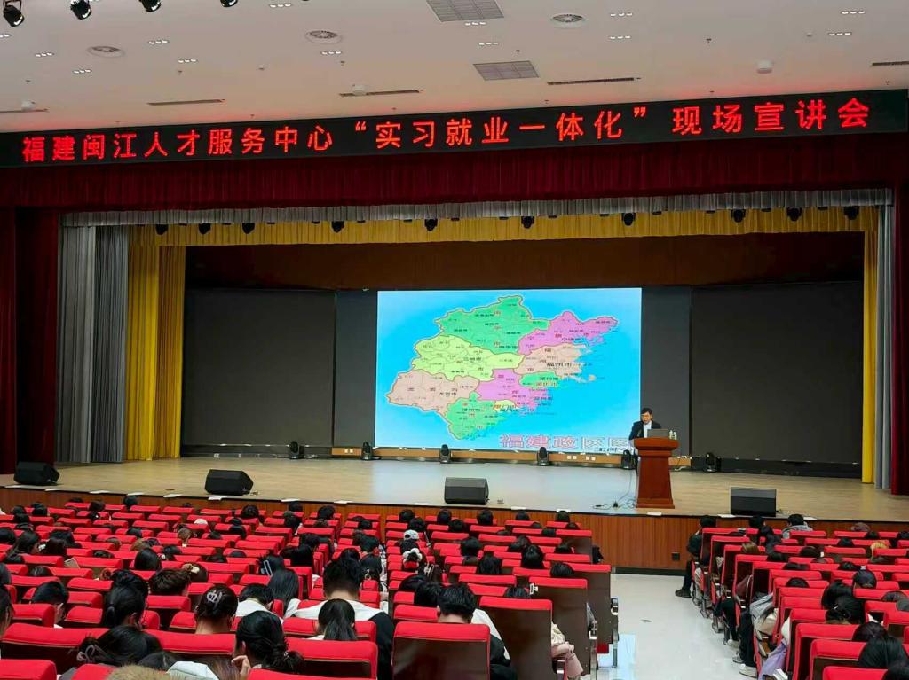 11月6日,福建闽江人才服务中心“实习就业一体化”宣讲会在我校学术报告厅举办,临床医学、护理、康复治疗技术等11个专业的700余名学生参加。