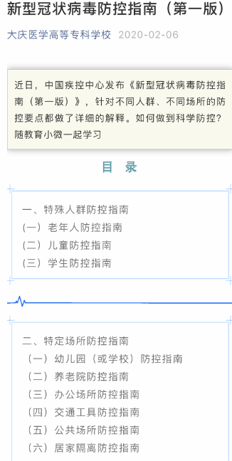 线上科普宣传利用校园公众号平台定期发布“防控防疫”科普文章,贴近校园生活的创新设计得到全校师生的广泛关注,初步达到“科普人人”的效果。