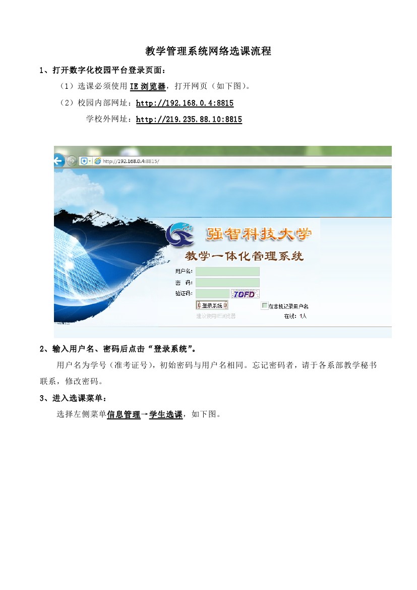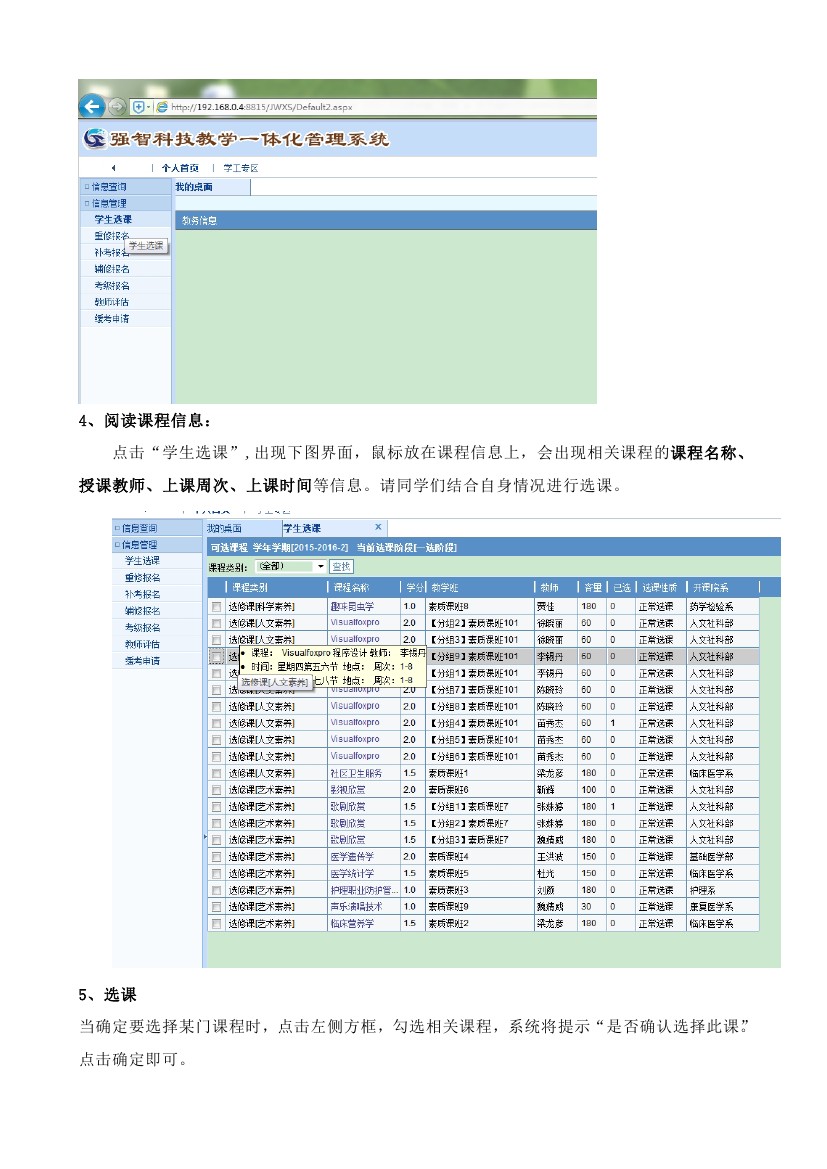 教学管理系统网络选课流程