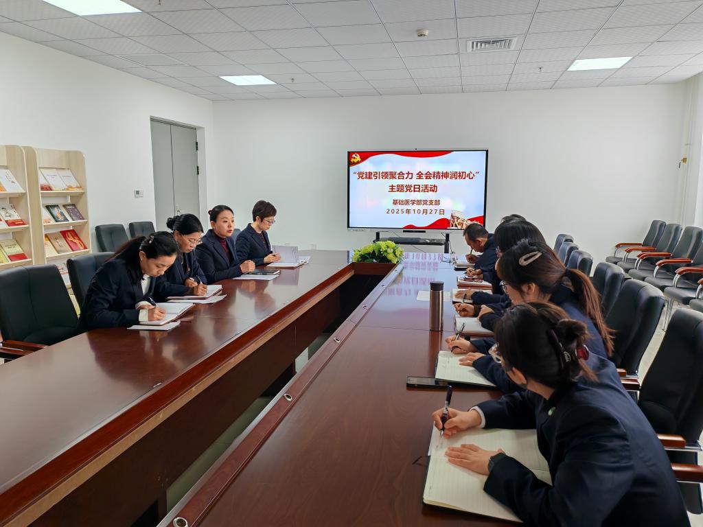 为深入学习贯彻党的二十届四中全会精神,10月27日下午,基础医学部党支部在教学科技楼517会议室组织开展了“党建引领聚合力 全会精神润初心”主题党日活动。活动由党支部书记王腾主持。