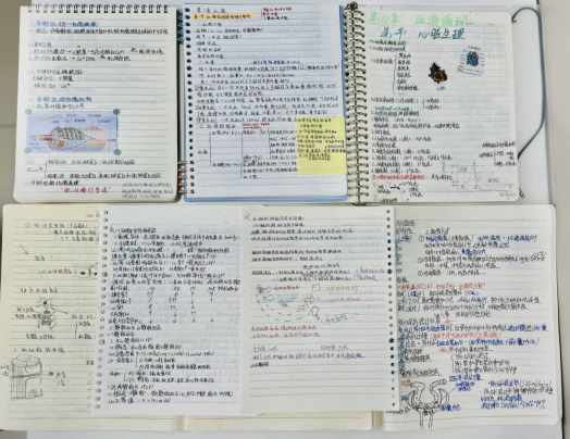 本次评选活动得到了学生们的热烈响应,提交的笔记内容全面覆盖生理学的各个核心章节,且形式丰富多样,兼具实用性与个性化特色。部分学生采用“手写+手绘”的创新方式,以简笔画生动呈现神经元结构、排泄过程等抽象原理,使复杂的知识变得直观易懂;有的学生巧妙运用“便利贴和活页纸条”,随时记录课堂上老师延伸的精彩案例,便于后续整理与复习;还有的学生参考教师发布在线上的PPT课件排版风格,在笔记中插入课堂重点截图以及课后查阅的健康科普资料,实现了“笔记+图示+实践参考”的有机融合。每一份笔记都充分展现了学生对生理学知识的深入理解,以及“将医学生理学知识应用于生活与临床实践”的强烈意识。