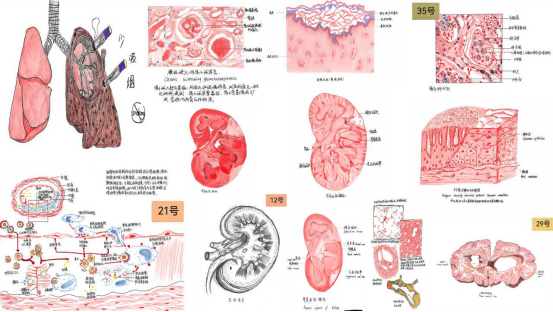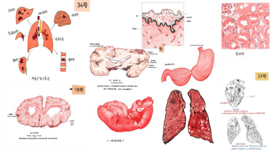 本次竞赛创新采用“集中征集、线下评审、线上投票”三位一体的评选模式,累计收到学生临摹作品700余份。参赛作品内容详实、风格各异、创意纷呈,既精准呈现了人体微观结构与生命奥秘的医学内涵,又融入了丰富的艺术创作巧思,充分实现了医学严谨性与艺术审美性的有机融合,有效激发了学生对基础医学的探索热情与美学感知力。经系部评审小组遴选,最终评定出一等奖8项、二等奖12项、三等奖16项。