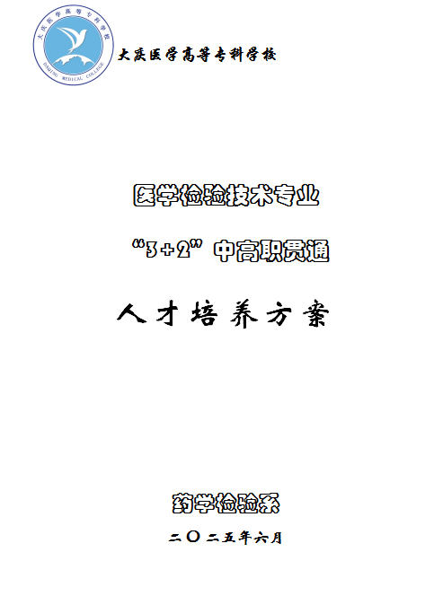 【来源:2025级-医学检验技术“3+2”中高职贯通培养人才培养方案 | 发布日期:2025-09-08 】