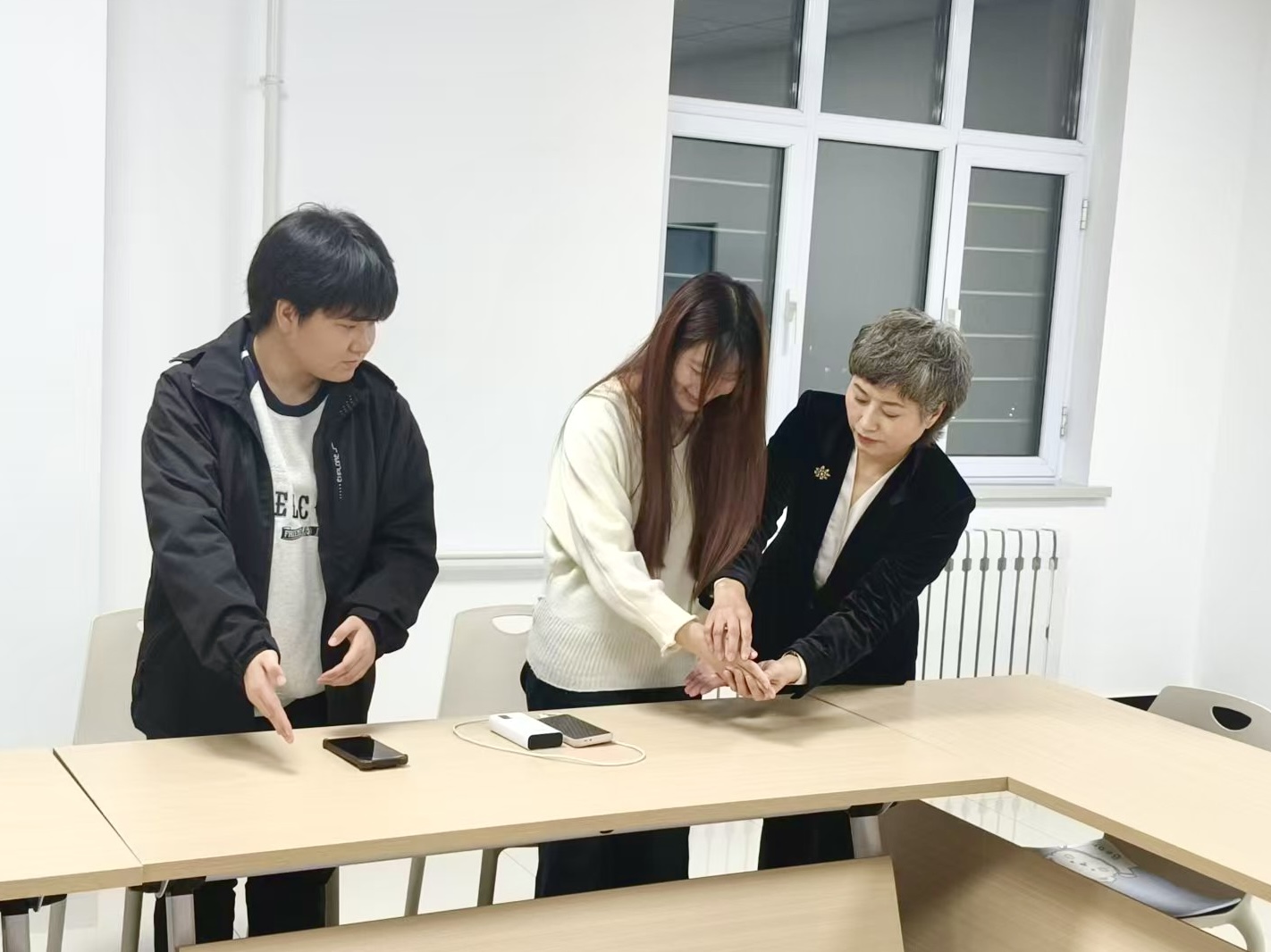 培训以“人工智能时代,礼仪是人类的核心竞争力之一”为切入点,围绕校园场景与职场需求,从三大模块展开讲解。在职场形象塑造方面,孙红华老师系统讲解仪容、仪表、着装规范,结合互动交流指出常见误区,帮助学生明确职场形象标准与要求;在社交礼仪实操环节,现场示范敲门礼仪、肢体语言、交往距离等内容,引导学生掌握沟通中的行为礼仪;在高效沟通技巧方面,讲解沟通原则与表达方法,倡导正向表达,强调不打断、不评判等沟通礼仪,让学生切实体会尊重与情感传递在人际交往中的重要作用,为今后步入职场、提升综合素养打下坚实基础。