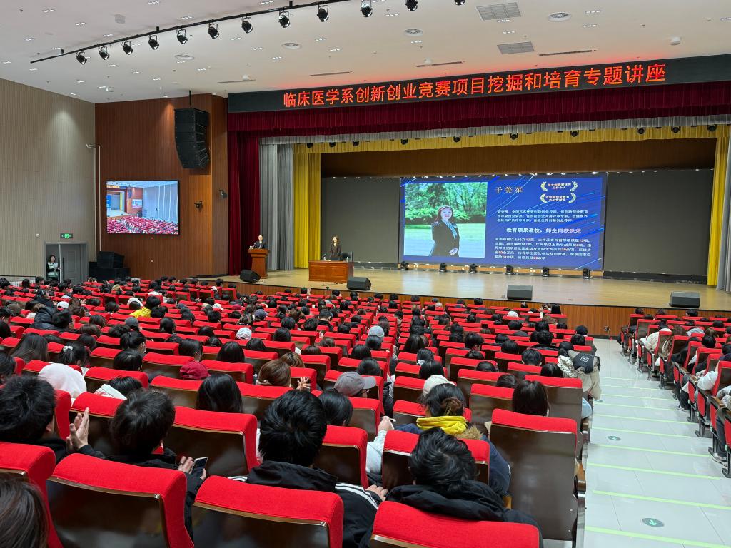 为深化医学职业教育改革,提升学生创新创业能力,大庆医学高等专科学校临床医学系于12月17日邀请省级优秀创新创业导师于美军老师在报告厅举办“医学创新创业竞赛项目挖掘与培育”专题讲座。本次培训旨在引导学生对接基层医疗实际需求,将专业技能转化为具有实践价值的创新项目,探索“以赛促学、以专促创、以创强专”的培养路径。讲座由临床医学系学生党支部书记张竹主持,系部专业教师、辅导员、学生代表近500余人参加了培训。