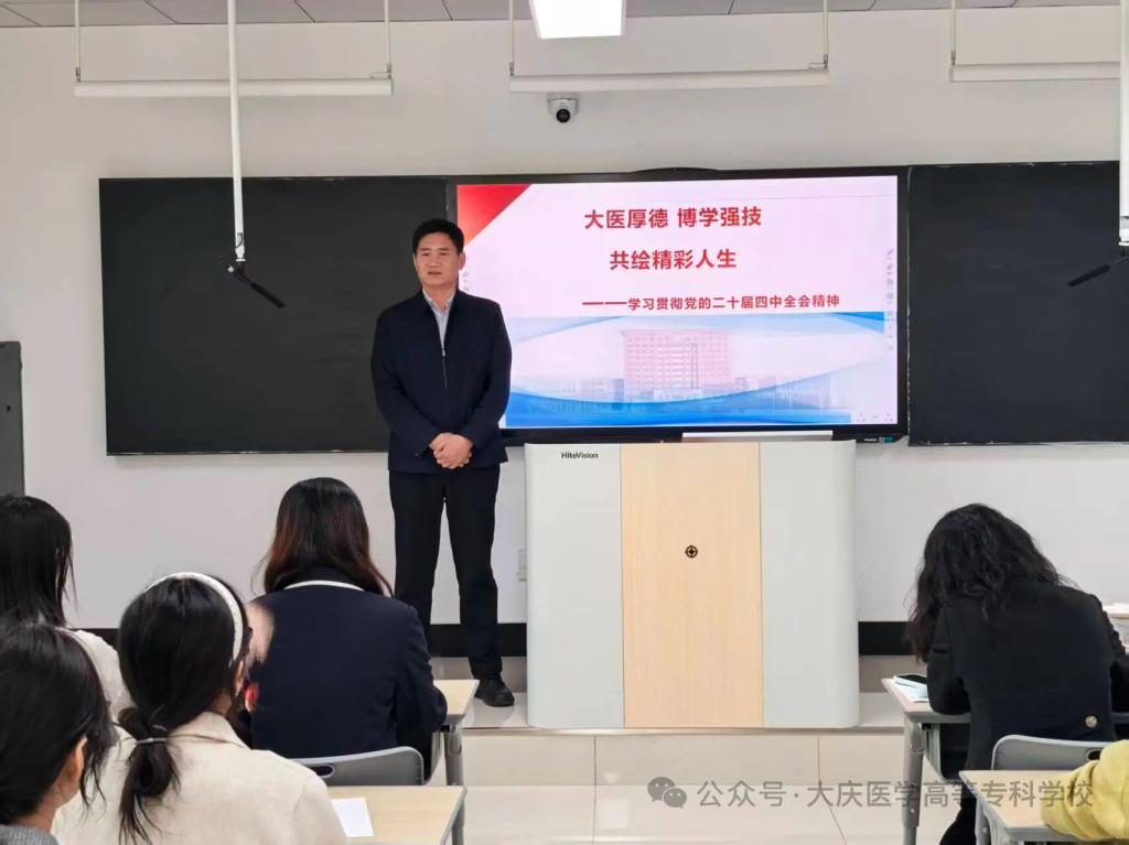 为深入学习贯彻党的二十届四中全会精神,引导青年学子树立正确价值观,12月19日,我校党委书记韩迈走进教学科研楼B401教室,以《大医厚德 博学强技 共绘精彩人生》为题,为大一学生讲授专题思政课。全体思政课教师现场观摩旁听,共同探讨育人实效。