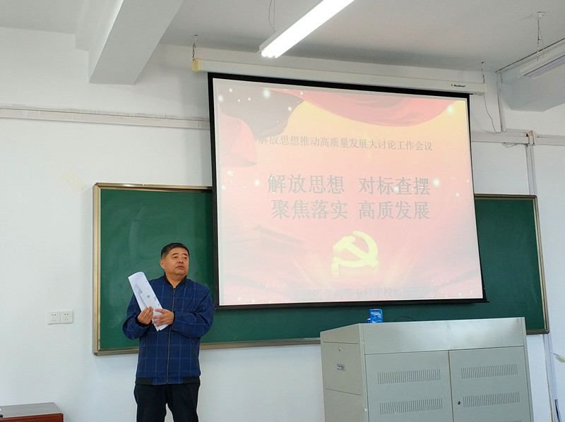 根据学校党委下发的《大庆医学高等专科学校解放思想推动高质量发展大讨论实施方案》要求,近日,临床医学系组织全体教职工,在康乐楼310实训室召开了“解放思想 对标查摆 聚集落实 高质发展”专题工作会议。会议由临床医学系党支部书记梁龙彦同志主持。
