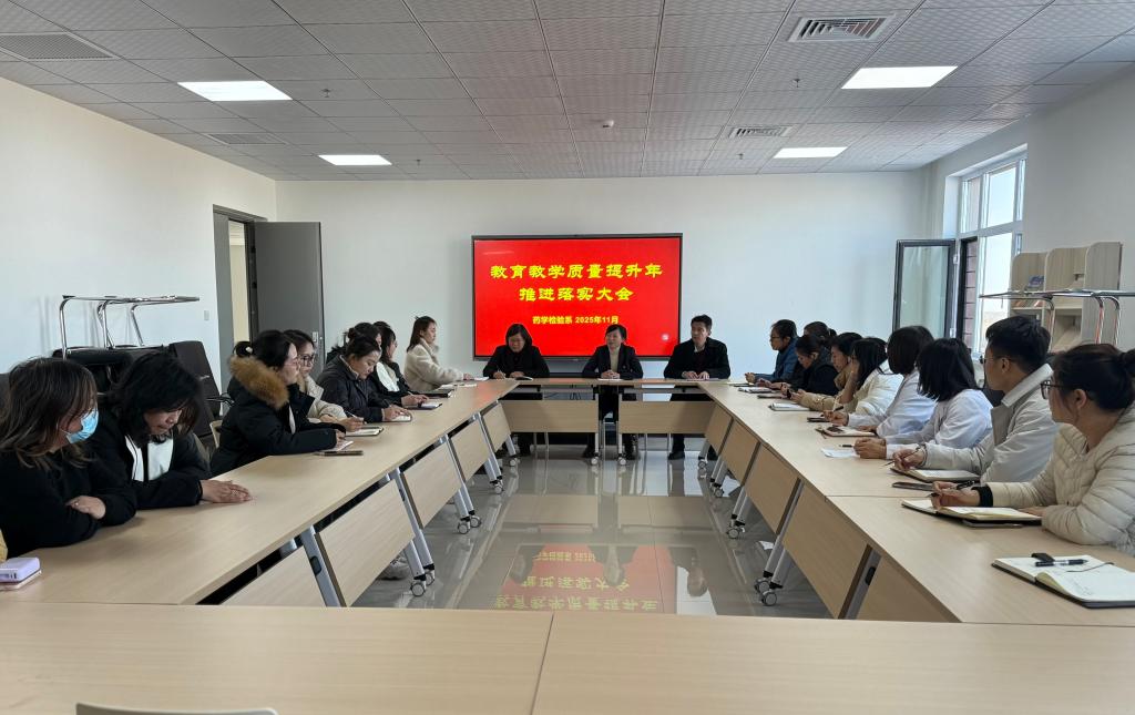 为全面贯彻落实学校“教学质量提升年”启动大会的会议精神,践行立德树人根本任务,强化责任意识,提升教育教学内涵质量。11月17日中午12:30分,药学检验系在学校教学科研楼药检系会议室召开了“学校教育教学质量提升年推进落实大会”。