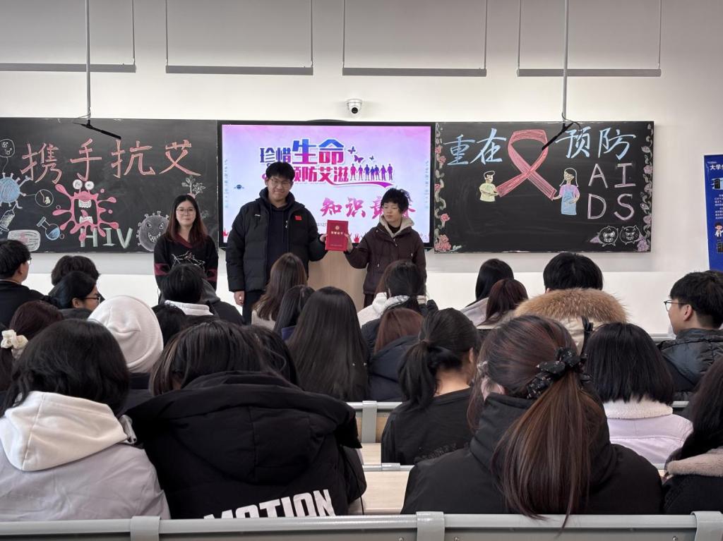 12月3日,预防艾滋病知识竞赛在教学科研楼B111教室举行。竞赛采用现场答题形式,全面考察选手的知识储备和应变能力。现场氛围紧张而活跃,选手们激烈角逐,观众席掌声不断。最终,经过多轮比拼,评选出一、二、三等奖,系部老师为获奖者颁发荣誉证书,并鼓励大家将所学知识传播给更多人。