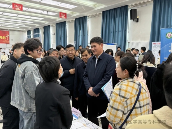 11月2日,由我校和大庆市人力资源和社会保障局联合开展的“‘就’在金秋 ‘职’引未来”黑龙江省2025届高校毕业生秋冬季校园招聘会在大学生活动中心成功举办,58家医疗卫生行业用人单位现场参会。党委书记韩迈及校领导班子成员深入招聘会现场与参会企业领导深入交流、访企拓岗。